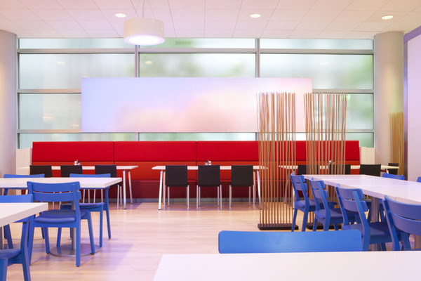 玻璃隔斷、落地窗幾乎成了整個辦公室裝修的主體,也正是這些元素的使用,才創造了這樣一個充滿陽光的辦公空間。