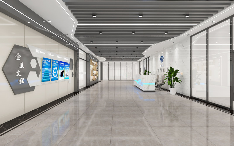 1、智能研發公司設計的辦公室案例:在設計時,設計師用簡潔的建筑手法,沒有一味的追求效益,設計各種美的造型,配合和諧的顏色,配置足夠的燈光,讓辦公空間的裝飾不在單調,讓員工感覺在家上班,這樣企業效益會更高。辦公室前廳設計的角度是正對電梯廳出口的,**引導性,光影的設計配合**科技感的材質顏色及機理,營造一個隧道的“科技”氣氛,同時兼顧商業和美觀。角型和直線型的一個燈具外形,使空間增加了一種炫酷感。白色瓷磚和墻面,使空間多了一份前衛感。宛如來到了一個智能化的前沿空間,**契合企業調性。