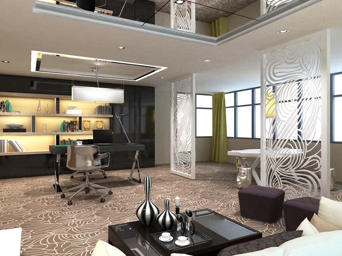 辦公室高科技風格的設計特點,高科技風格是現代主義風格隨著科技發展而派生出的新設計流派,它強調空間造型的現代感和奇特感,使設計常采用非對稱的、非傳統的構造形式,在辦公室設計中大量采用金屬材料、玻璃材料、合成材料以及新材料、新技術、新工藝。 高科技風格設計造型上大膽創新,同時造型也更加靈活和流暢,傳統的造型裝飾要素不再取用,如柱子的上楣、墻裙、掛鏡木線、石膏角線、木角線等,取而代之的是大塊面的玻璃金屬結構造型、現代合成材料的組合飾面,在構造元素上如樓梯欄桿、扶手、固定造型體等配置上,采用精制加工金屬、玻璃成品組裝件。在采光方面,也加強了自然光的利用,人工照明也力求柔和不扎眼目,照明光線通常是通過頂棚、擱板、墻面的反射或折射光。