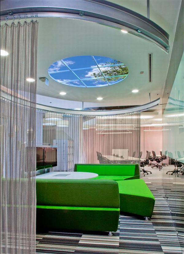 4、國外創意工業園區辦公室裝修設計:天棚采用玻璃鏤空,增加室內亮度,造型迥異,增強視覺沖擊力。