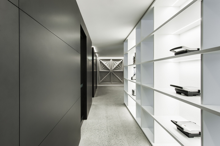 ? ? 家具折疊,顯示臺和架子都是移動的工作場所的靈活性進一步支持由一個智能音頻視覺系統。當你通過工作場所的活動測試廚房和工程領域已被納入在一般辦公區內的每個品牌類別。這些都是直接連接到合作的“貓走”的設計,特別是讓產品設計人員,技術工程師和食品技術人員共同努力,產品開發。這樣的方式來規劃新的布雷維爾和允許球隊之間的異花授粉和傳播。該工作場所包括一個廣泛的模型車間附件原型,消防和生命測試實驗室和3D打印室。