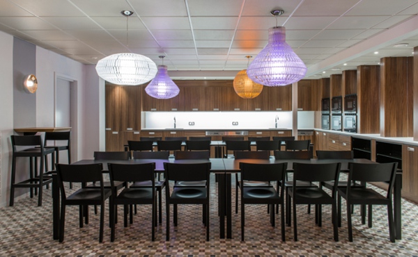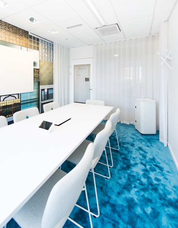 領企設計團隊對原來的空間進行了驚人的改造,煥然一新的辦公環境不僅現代感十足而且多姿多彩,舒適溫馨的氛圍充斥著家的感覺。室內裝飾的亮點應該是各種色彩的舒適地毯、休息椅、窗簾布藝和造型時尚的家具,在該項目中,設計師還加入了更為強烈的藝術元素,辦公室和會議室的墻壁上裝飾了插花圖案以模仿紋理效果和顏色組合。此外,在會議室的墻壁是模擬各種外墻效果,用瓷磚、馬賽克、玻璃磚或彩色玻璃演繹各種生活中常見的場景。