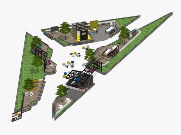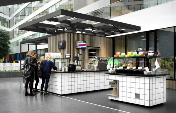位于一樓的中庭主要是團隊協作共創區、休閑區和大型吧臺服務區三大功能區塊,結合生機盎然的綠化共同交織而成一個開放、活力、精彩紛呈的時尚辦公空間。
