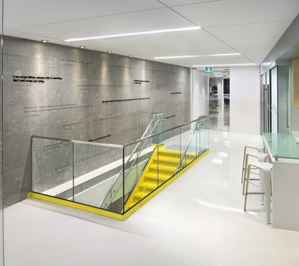 設計師在進行辦公室裝修設計時運用了大量精美的汽車飾面板、防護玻璃等與汽車有關的元素,以此寓意 LGM的服務范疇。*終,設計團隊打造出一個高端的車庫式空間氛圍:精致的拋光混凝土地面、工業風金屬燈具、以及采用汽車部件創意的辦公家具等。