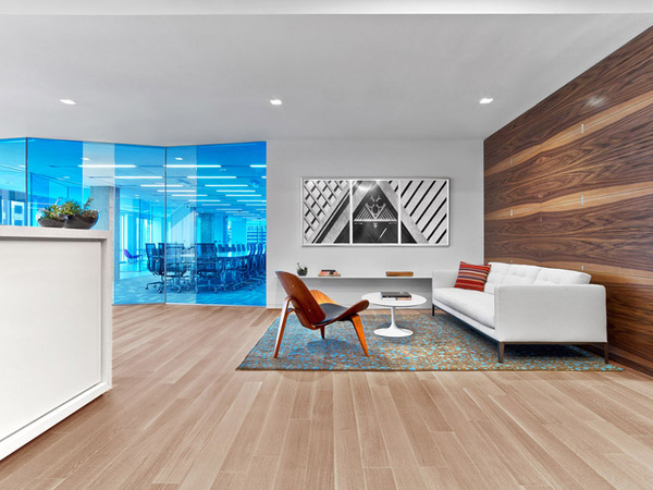 上海辦公室裝修公司-領企裝飾今天要與大家分享的是一家來自國外的律師事務的辦公室裝修設計。設計師摒棄了傳統律所中隨處可見的大理石和紅木材料和角落辦公室的傳統構造,通過使用大量原木材質和明快色彩,讓莊嚴肅穆的律所“走下神壇”,變得輕盈而美妙。