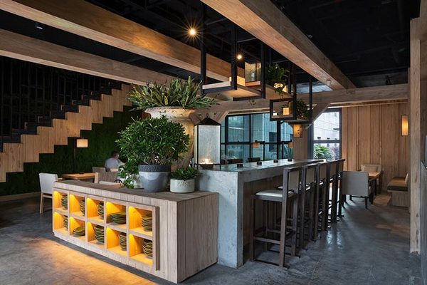深色木條作為室內墻面的主要材料奠定了整個空間的基調,而整個中餐廳桌椅和配飾運用了不同程度的灰色,營造出一種神秘的氛圍,這就是該餐廳裝修設計的魅力!