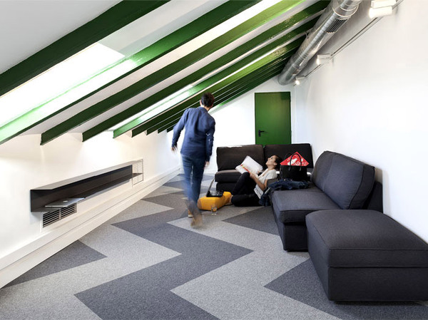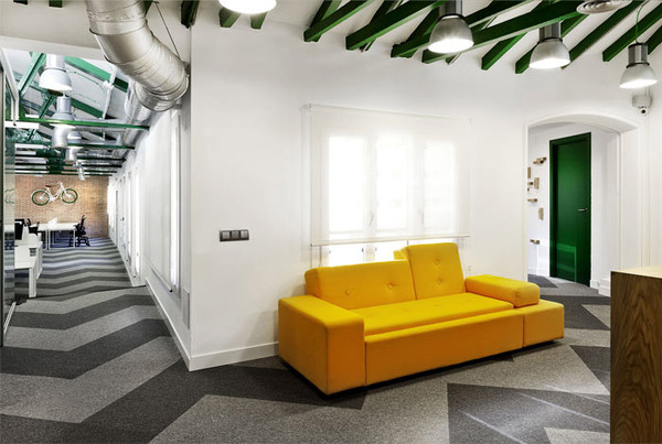 在辦公區域的設計上面,設計師主要采用黃色作為其中的色調之意,黃色給人輕快,充滿希望和活力的感覺。
