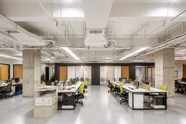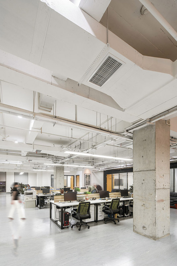 新辦公室的設計之初,本著拋開一切的華而不實的裝飾,保留建筑*本真的空間屬性,柱子和天花被**化的保留原始的風貌,揭示出裸露的構造。