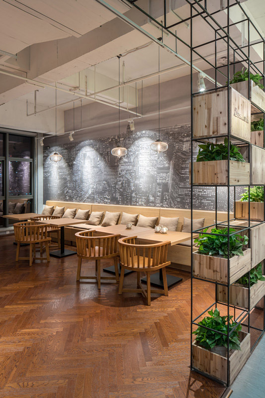 以建筑*基本的材料來重構整個空間的精神:鋼筋、混泥土、原木、原頂、鋼板等喚起工業城市美學,簡單、大膽、實用,突出設計的屬性。