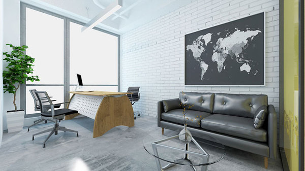 總經理辦公室的設計,落地窗與地圖都是其亮點,落地窗可以很好的為空間帶來溫暖的陽光,地圖主要鍛煉人的思維,寓意不管做什么都要有全局的眼光。