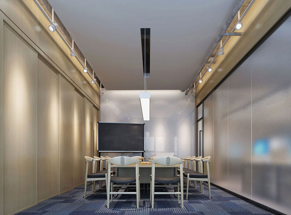 會議區辦公室的設計,設計師將光效弄得特別亮,很有潮氣活力,很有層次感,有由淺至深地了解一個品牌的寓意。