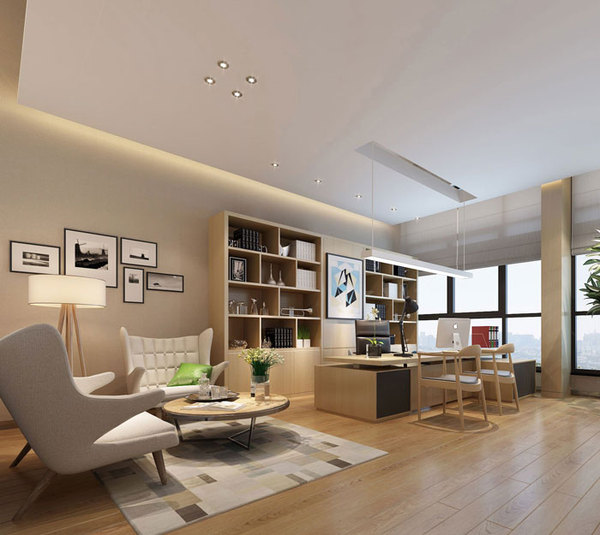 總經理辦公室的設計,設計師主要采用軟裝的相互搭配對空間進行設計,光源的設計也是設計師設計的一大方面,軟裝和光源構成了一個完整且舒適的總經理辦公室。