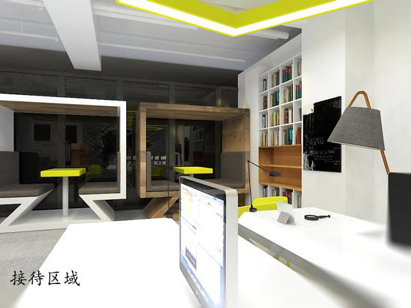 接待區域的設計:設計師在設計的時候,費勁腦汁的去搜索近些年來的創意辦公家具設計,設計師的目的就只有一個,就是希望在辦公家具上另辟蹊徑,以此彌補小空間的天然限制。