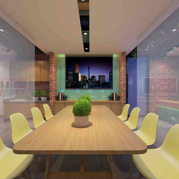 會議室的設計,設計師采用取中的手法,將會議室很好的融入辦公室區域與茶水間之間,使的空間得到進一步利用。