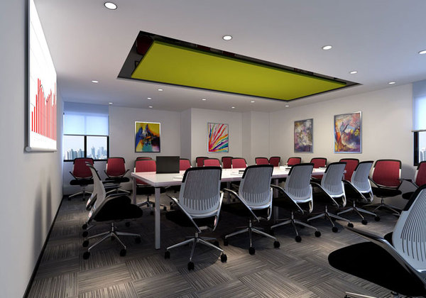 會議室的設計,設計師看來主要就是調動員工區域積極的思考,在設計的時候設計師采用色彩之間的變化,為企業提供了很好的思考與討論空間。