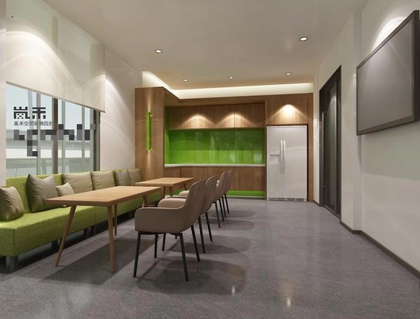 茶水間設計,設計師覺得不用太復雜,員工在這里主要是想喝杯茶放松放松,設計應該簡潔明了,在同時需要注意情調的營造。