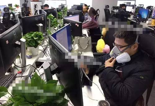 除了隨處可見的凈化空氣植被和儀器外,員工們戴口罩辦公的一幕讓記者印象深刻。沿著數(shù)列長條形的辦公桌望過去,幾乎一半的員工都帶著口罩。