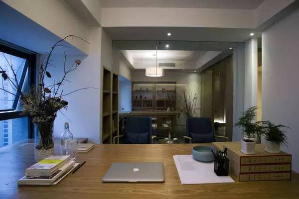 本案中式辦公室設計以素雅簡單為主,使用單一簡單的木飾材料與白色墻面形成對比增加空間的層次感,空間大量采用留白的手法,插入些造型細節,讓立面顯得干凈而又不會太過蒼白單調,再用暖色燈光中和白色墻面的冷,使整個空間看上去非常的溫馨干凈。