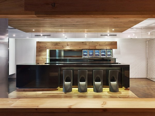 設(shè)計(jì)圍繞四個(gè)空間主題:休閑吧、線(xiàn)形開(kāi)放式辦公位、羊毛氈飾面的空間結(jié)構(gòu)體、以及大會(huì)議室。場(chǎng)所不僅適用于辦公需求,還兼有多重功能,如舉辦各種派對(duì)、發(fā)布會(huì)、開(kāi)幕式、以及招待會(huì)等,因此休閑吧成為空間的重中之重。