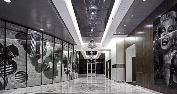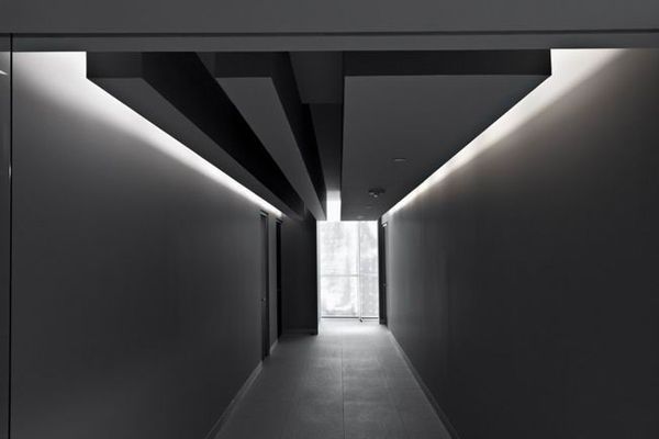 辦公室設(shè)計的辦公區(qū)域和走廊,灰色也不會顯得單調(diào)。灰色可以是地板,作為整個空間的輔助;也可以是主體,就像兩側(cè)墻壁上明暗不同的灰色組成的圖畫,吸引眼球。