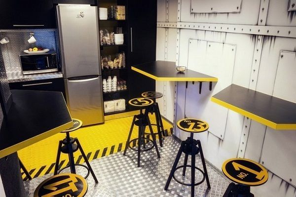 破舊的太空艙們、金屬質感的墻壁、怪異的異星植物、貼著黃色警戒線的桌椅……一看這個風格就是太空逃生游戲主題的辦公室設計!在這樣的的辦公室空間內工作好像有種賦予了重大任務馬上要去拯救宇宙拯救地球的既視感了呢!