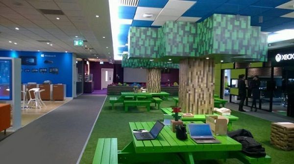 方塊積木一般的樹,塊狀的藍天白云。這是什么,相信不用小編多說了吧!這個Minecraft(我的世界)風格的辦公室設計是微軟公司在英國的一家公司的辦公室設計。整個辦公室風格都被設計成Minecraft風的,置身于這樣的辦公室空間之中讓小編不僅想掄起斧頭砍下一塊材料收藏起來了呢。領企設計:http://www.gaozhicai.com.cn/