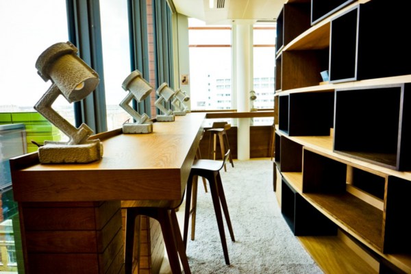 辦公室辦公桌桌板前緣應呈圓滑狀的斜邊設計,或是四分之一圓設計,以避免傳統的直角設計會壓迫手肘部份血管的弊病。目前的辦公桌設計已到了思考延伸的地步,員工在辦公桌前不一定要坐著,有許多需要站著的工作,例如專職查詢、制圖之類的工作,這就需要較高的桌面。此外,在辦公室辦公桌的材質選擇方面,也不再局限于鋼制一種,多樣材質如強化玻璃、皮革、木材、鋁合金的加入讓辦公桌椅的變化更大,也呈現出更加活潑的面貌。