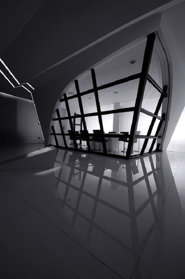 看到這個會議室,你會聯想到什么?領企小編我首先想到的是船頭。船頭是劈開大海波浪,帶領船身乘風破浪向前進的地方。把會議室裝修成船頭恐怕也是這個用意吧。辦公室設計大量運用灰色的原因恐怕就是灰色是無彩色,即沒有色相和純度,只有明度,使用灰色能夠為了突出這里的結構設計了吧。