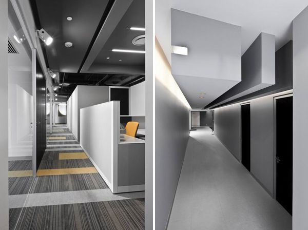 辦公室設計的辦公區域和走廊,灰色也不會顯得單調?;疑梢允堑匕?,作為整個空間的輔助;也可以是主體,就像兩側墻壁上明暗不同的灰色組成的圖畫,吸引眼球。