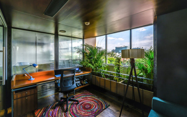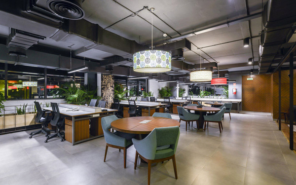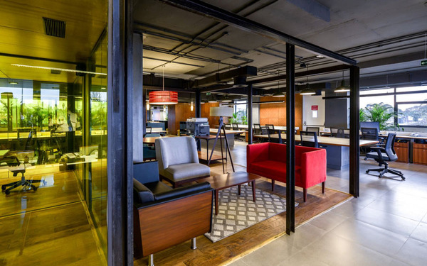 整體辦公室裝修設計以粗獷的大地色系配以隨處可見的綠色植物,營造如在戶外探險的氛圍,創建一個充滿活力的協作型工作環境。這些綠植和工位系統巧妙結合在一起,在長時間的工作環境里,偶爾瞥見近旁的植物,給眼睛帶來片刻的舒緩和休息。同時這樣的氛圍營造契合公司的品牌文化。有趣的設計元素,形成一個非常有趣的空間表達。更多辦公室裝修設計關注領企設計:www.gaozhicai.com.cn