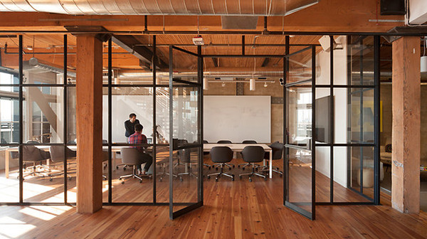 混凝土新時尚,這是一家用舊廠房改過的辦公室設計,完全開放式,分成多個空間,辦公室設計公司不斷將這種新鮮時尚的感覺放大。無疑這是很典型的一種工業風格,設計師充分的尊重并利用廠房里的的舊材料和原始特征。加入現代的形式,玻璃的會議室間隔,優雅的琺瑯前臺,再看大量使用的木材和磚石,和板形混凝土**在一起融合。