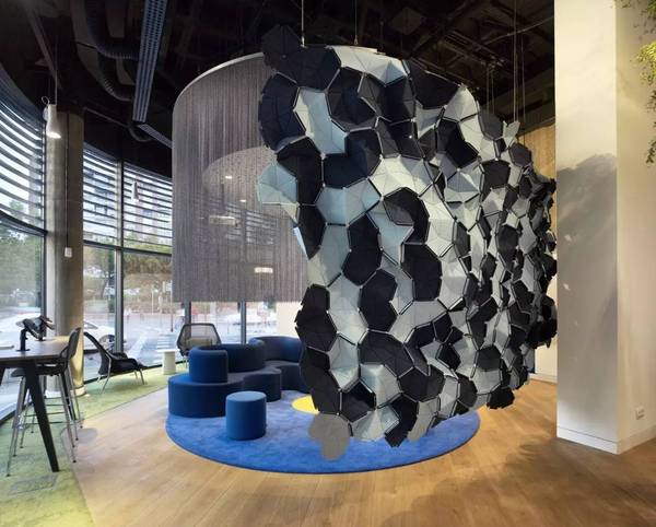 為了滿足多種用途,設計師在大廳里構建了一個多功能的空間,人們可以根據需要巧妙的改變布局規劃,而且這個地方無論是從視覺或聲學角度都具有一定的隱密性,再加上那些可移動的裝修元素,使得人們可以在不破壞天花板或者地板的情況下,在視覺上享受到空間的連續性。