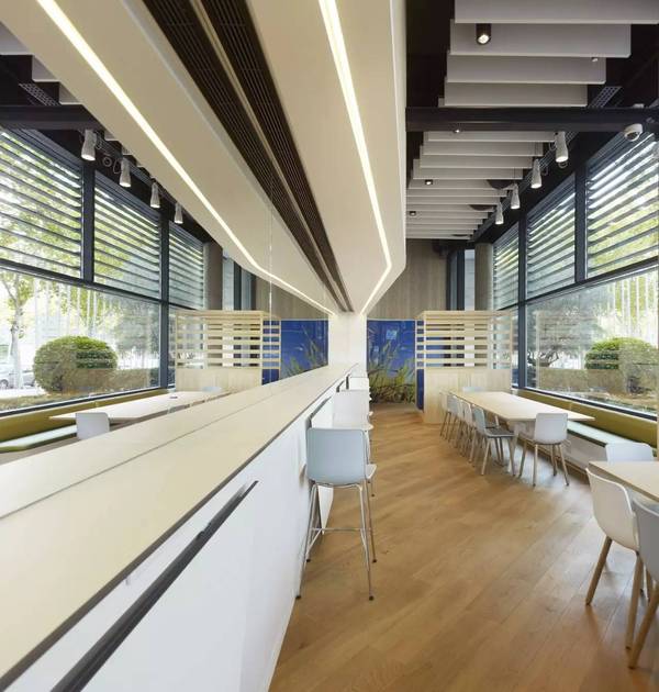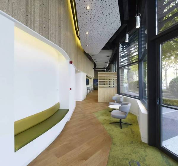 這個地方不僅僅只是訪客中心,它還必須兼具其他多種功能,比如用來傳達與公司產品有關的信息、發布新聞、舉行會議、服務客戶、供員工們吃飯休息喝咖啡、或者僅僅就是等人。