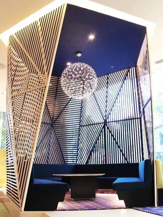 沙發背后一大方的隔斷,也是鏤空,鐵藝的材質搭配幾何圖案,更為耐看。