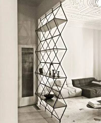 不同材質的混搭不僅提供了隔斷,又能起到儲藏和展示的功能。