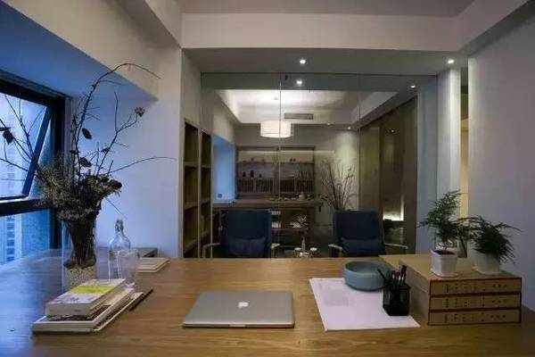 本案中式辦公室設計以素雅簡單為主,使用單一簡單的木飾材料與白色墻面形成對比增加空間的層次感,空間大量采用留白的手法,插入些造型細節,讓立面顯得干凈而又不會太過蒼白單調,再用暖色燈光中和白色墻面的冷,使整個空間看上去非常的溫馨干凈。