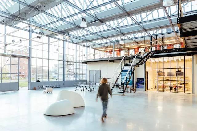 那個設計過夜光的智能公路,星空自行車道,出現在北京的吸霾塔,阿姆斯特丹的"beyond"云墻等,充滿未來科技感和藝術感的Roosegaarde工作室在鹿特丹的新辦公室,有一個很詩意的名字叫"21 世紀夢想工廠"。