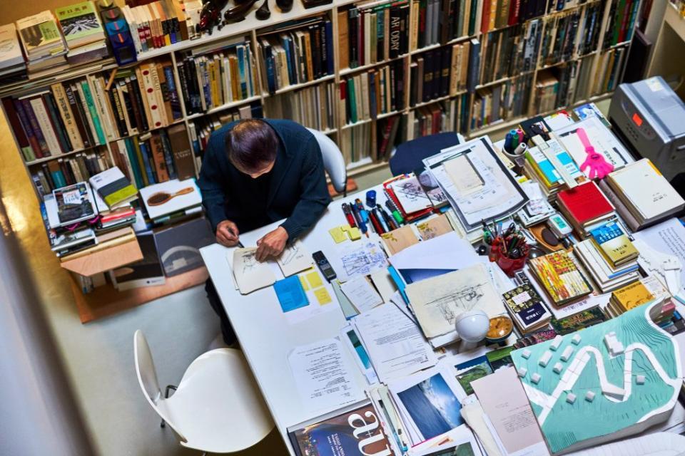 相較于伊東豐雄作品中一貫的簡潔線條,他的辦公室卻意外地被一疊又一疊的合約文件掩埋。可凌亂的文件似乎以另一種美感沖擊的觀者的視野,讓我們在不同色塊毫無規律的羅列中,體味到設計師的隨手之美。