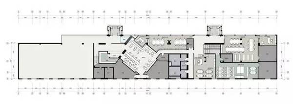 “ 整個創意空間環境設計中,處理空間分布是*重要的一環。寸設計在整個空間的布局過程中,用一個變向45度的咖啡廳作為整個,功能分區的中心集合區,而這個集合區的作用既起到了咖啡廳和大堂的功能,也在流線上解決了分流問題。 ?”