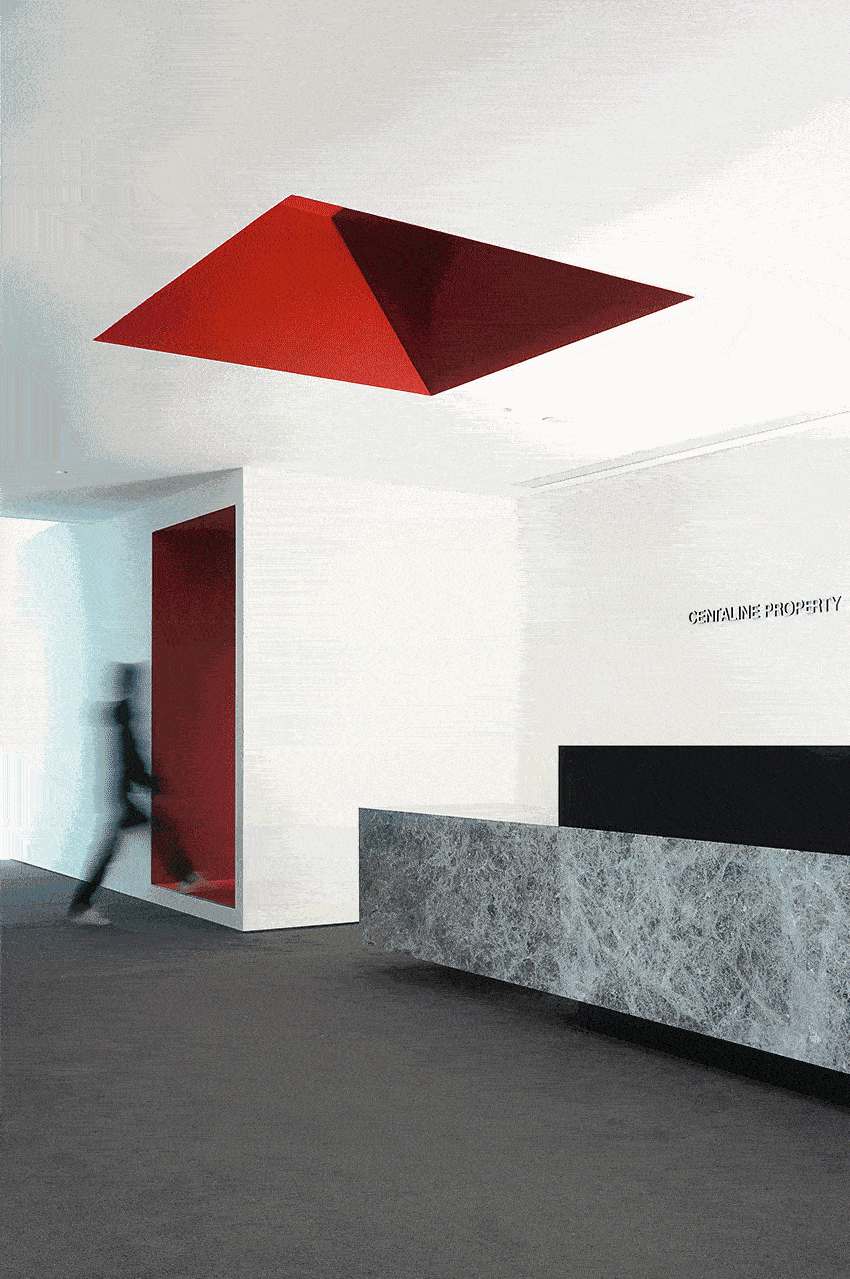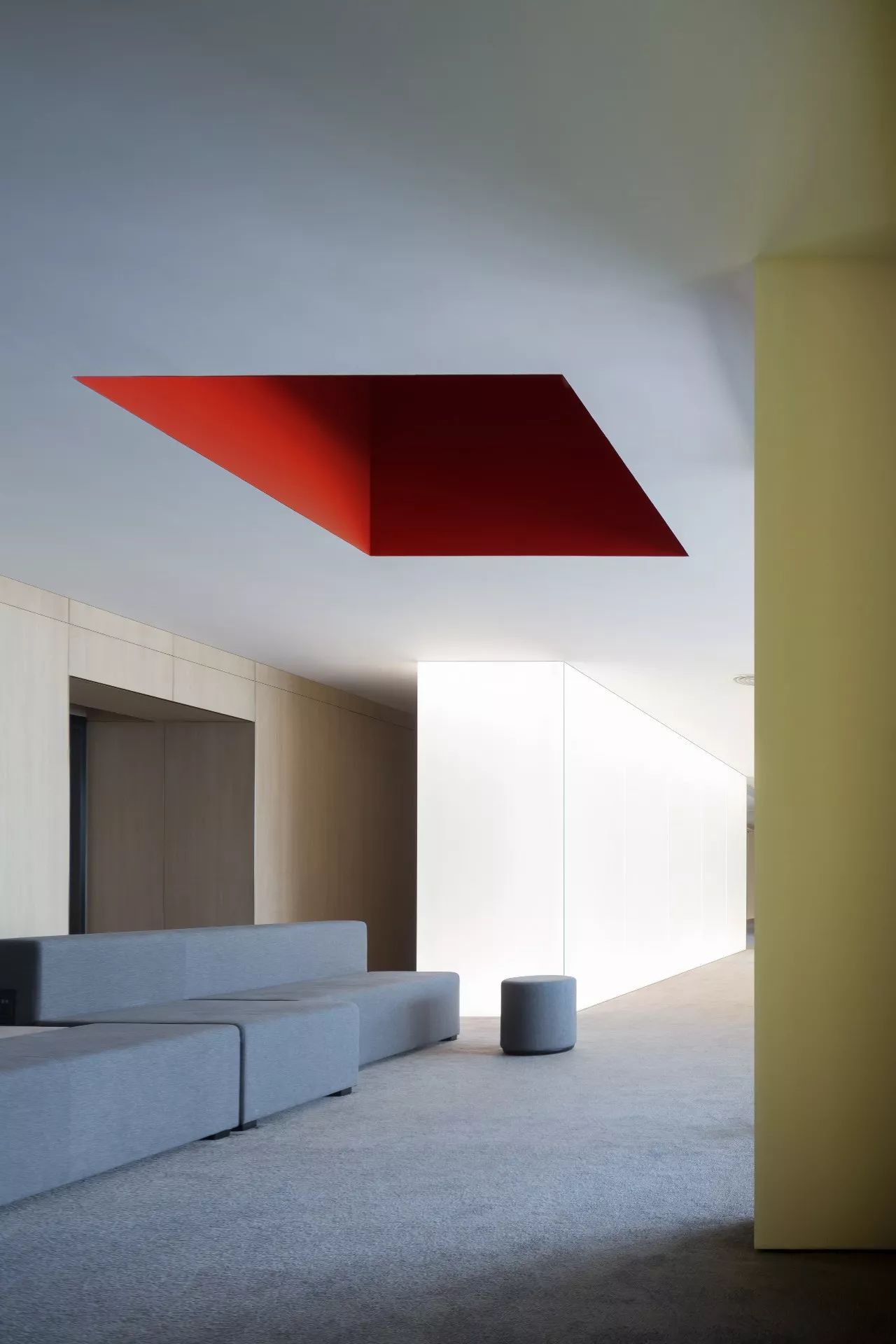 大廳天花頂部的開孔與立面的開孔相呼應,呈現豐富而有趣的空間構成和層次的延伸感。