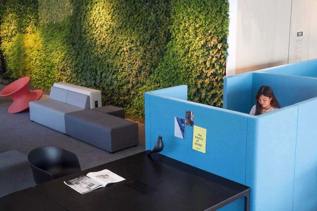 為了弱化傳統辦公室的緊張氛圍,公共休閑區配置了特別大的面積,包括大面積的垂直綠化墻、廚房及水吧。成為員工聚會、休息,或工作交流、頭腦風暴的聚集地。模塊化的沙發,能實現多變的組合方式,以及滿足員工360度全方位的無障礙溝通。