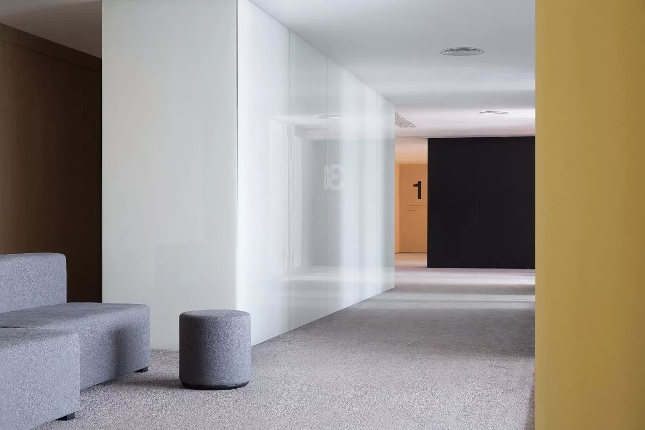 會務中心層的發光玻璃墻,滿足了整個空間的照明,同時又成為空間的視覺核心,營造出純粹、安靜、脫俗的藝術辦公空間氛圍。