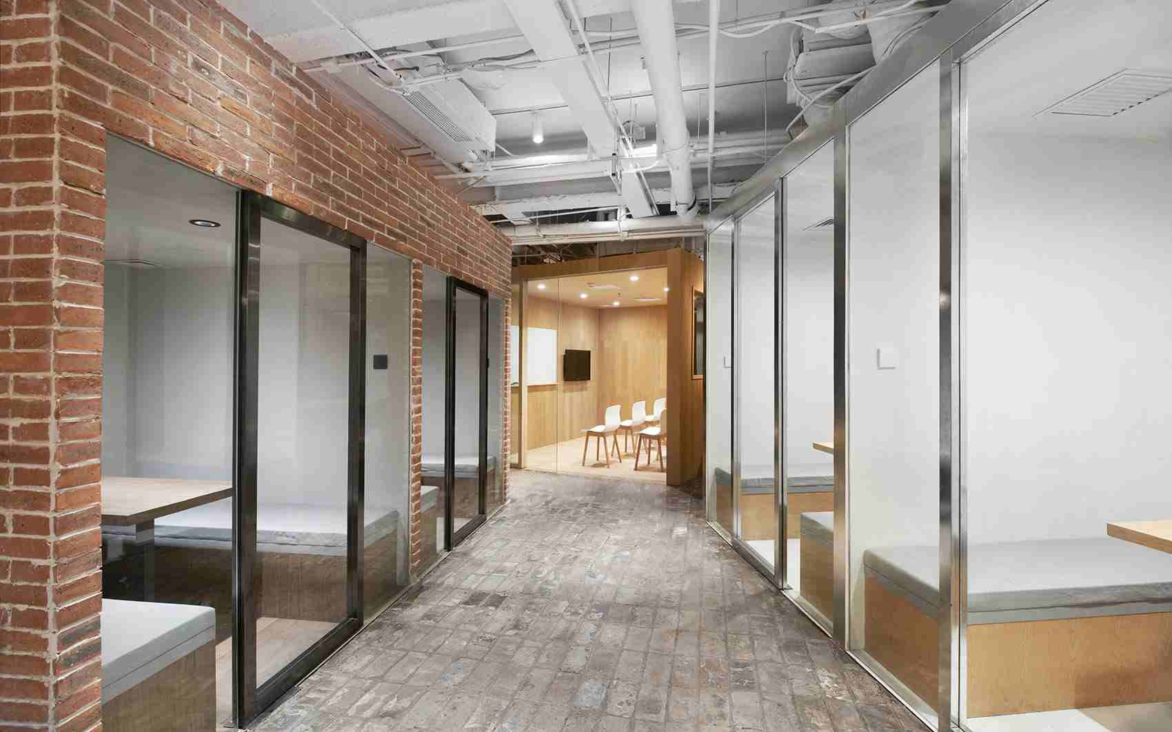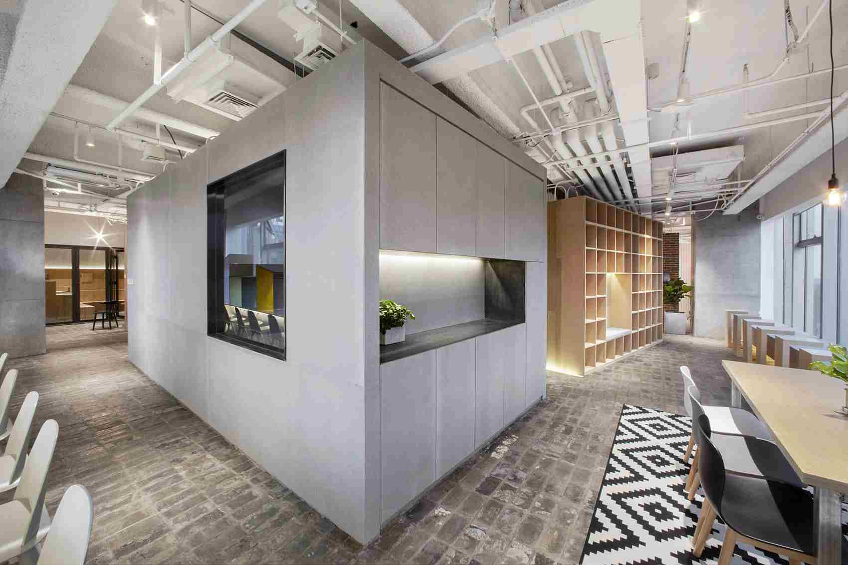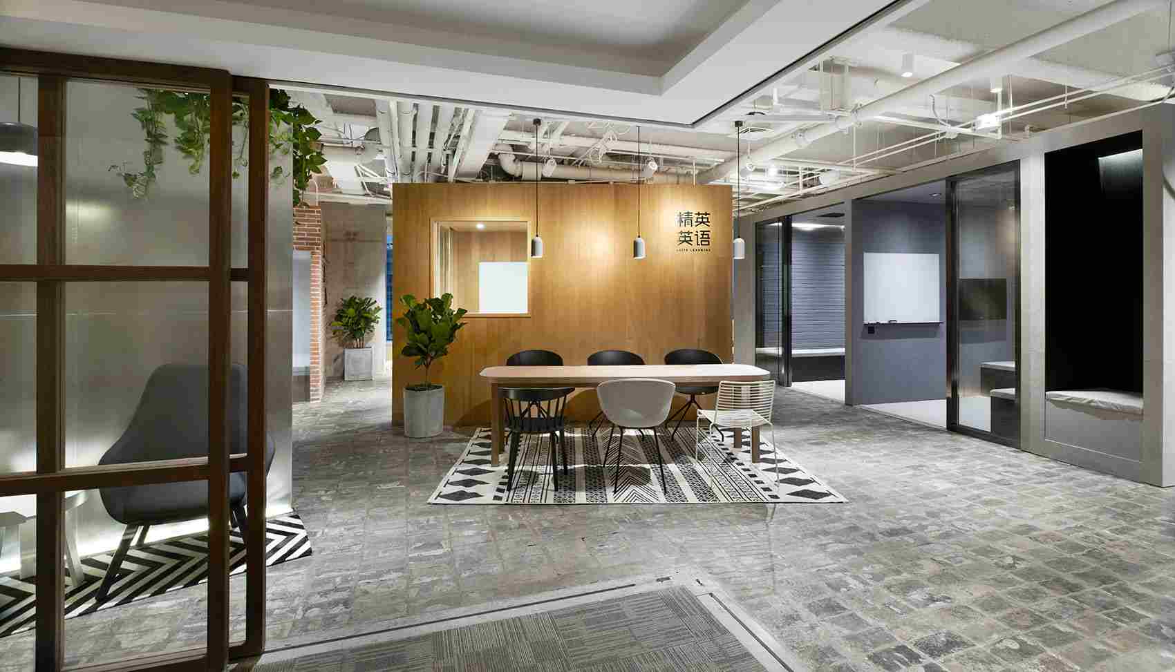 項目位于一座辦公樓內,業主租賃三個房間作為學校的辦公和培訓區域。為了整合全部的空間的使用,設計師將其打通成為一整個房間。