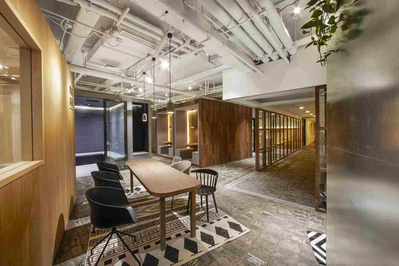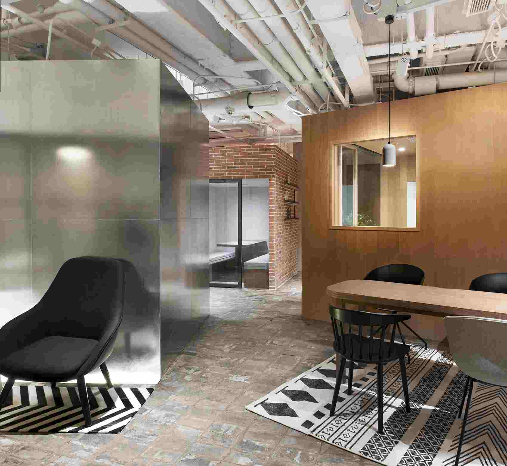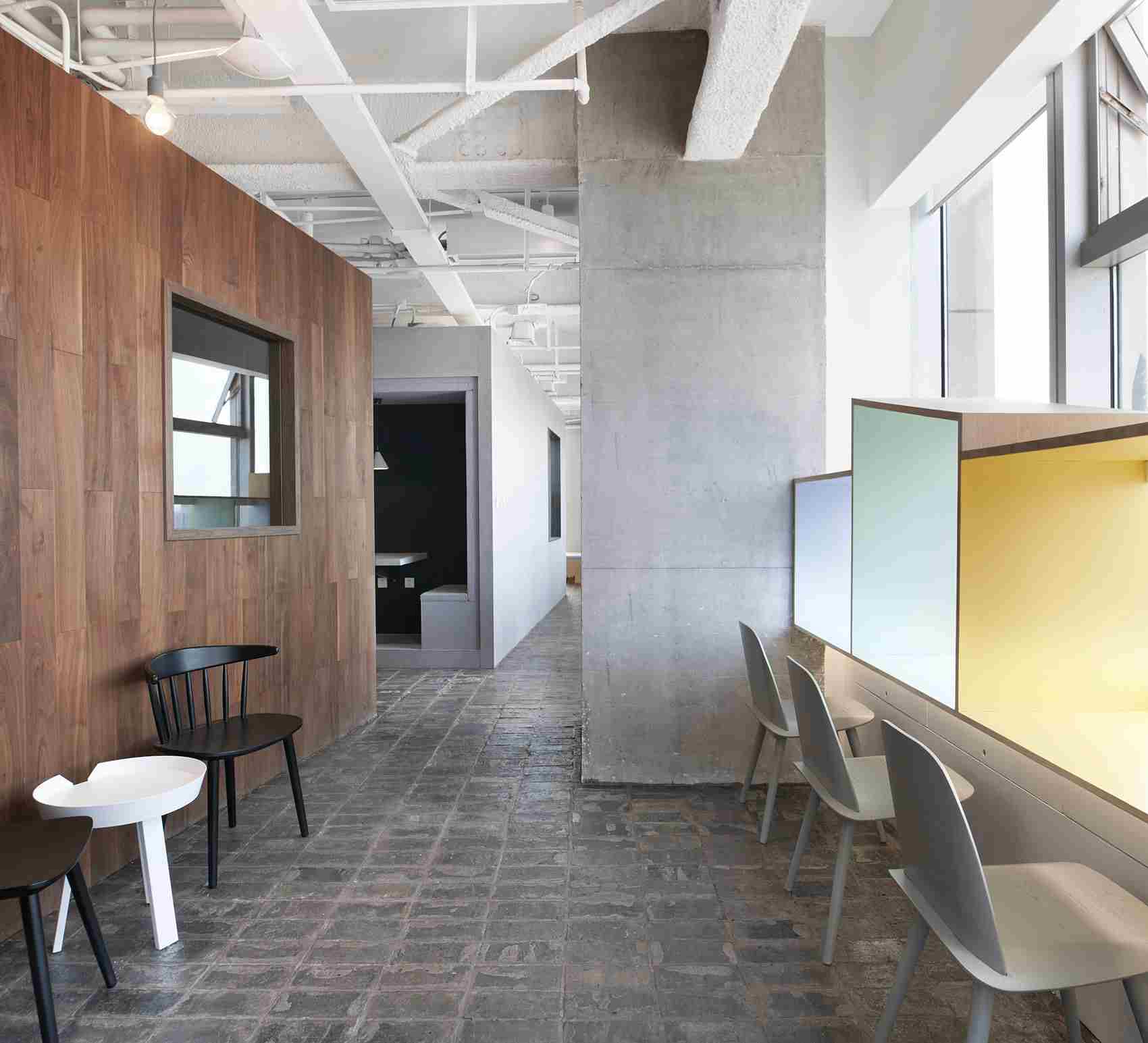 項目位于一座辦公樓內,業主租賃三個房間作為學校的辦公和培訓區域。為了整合全部的空間的使用,設計師將其打通成為一整個房間。
