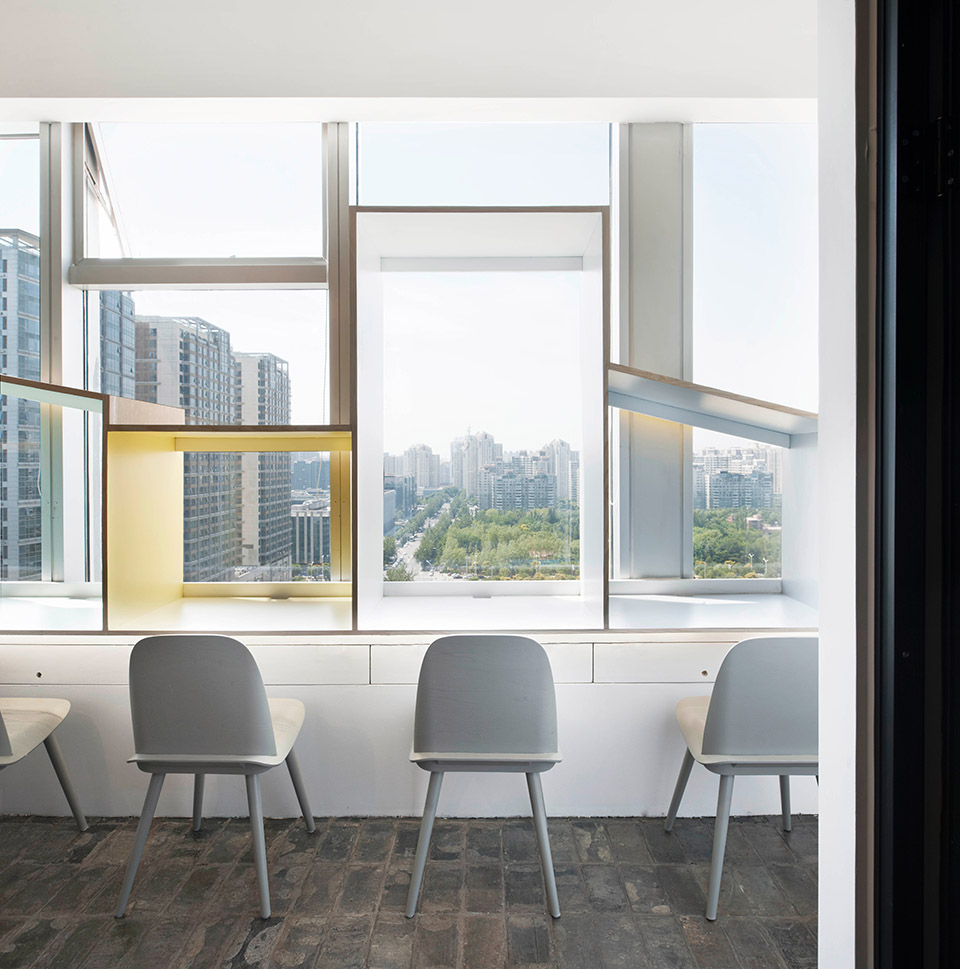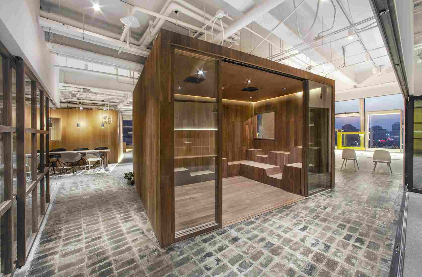 本案的空間的設計,與傳統的教室的設計有所不同。設計的核心概念為社區,它由五個不同材質的盒子,圍合出功能不同的區域空間,比如,書房,廚房,辦公交流等公共區域。房間內則是教室,每個房間都擁有良好的視野和光線。