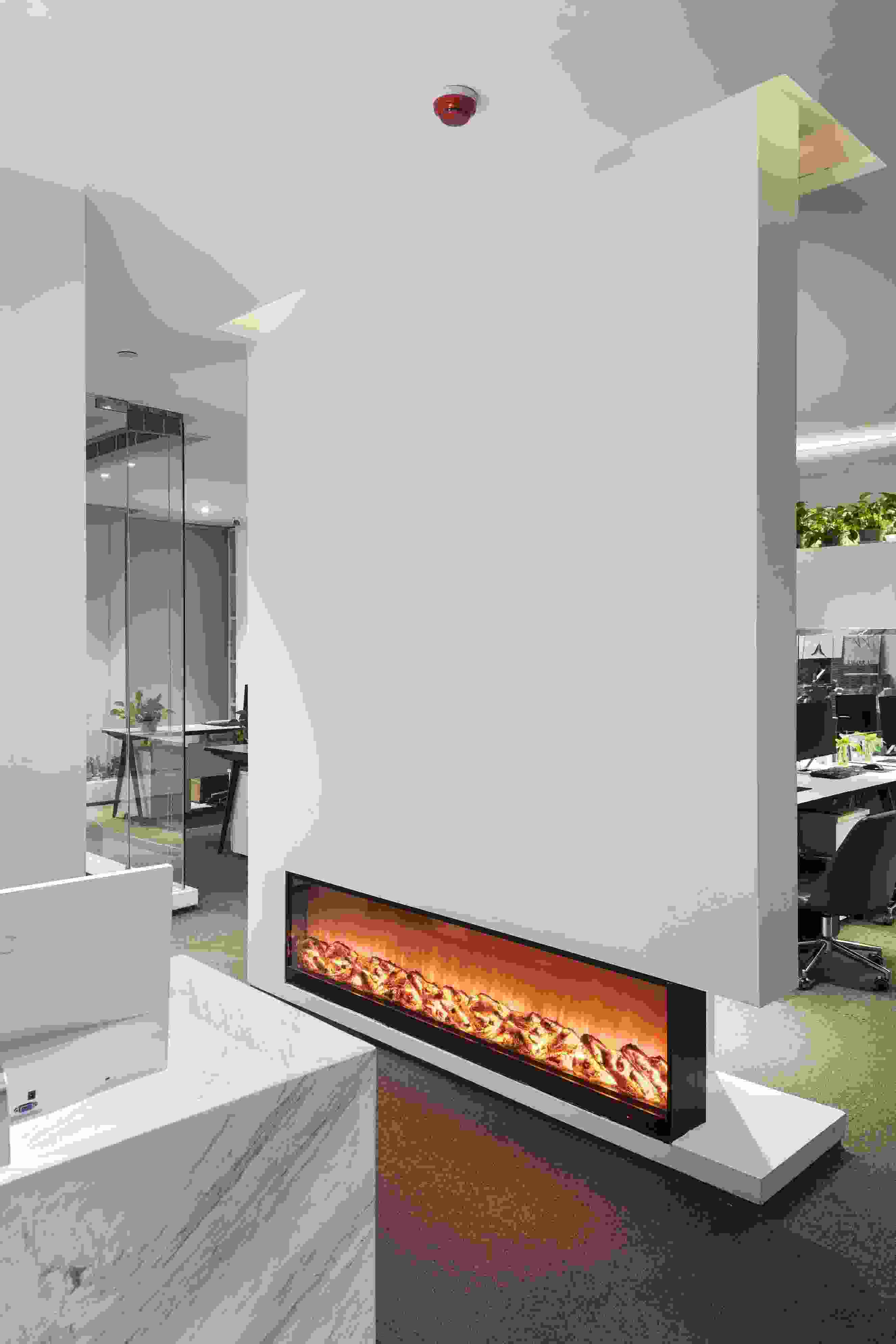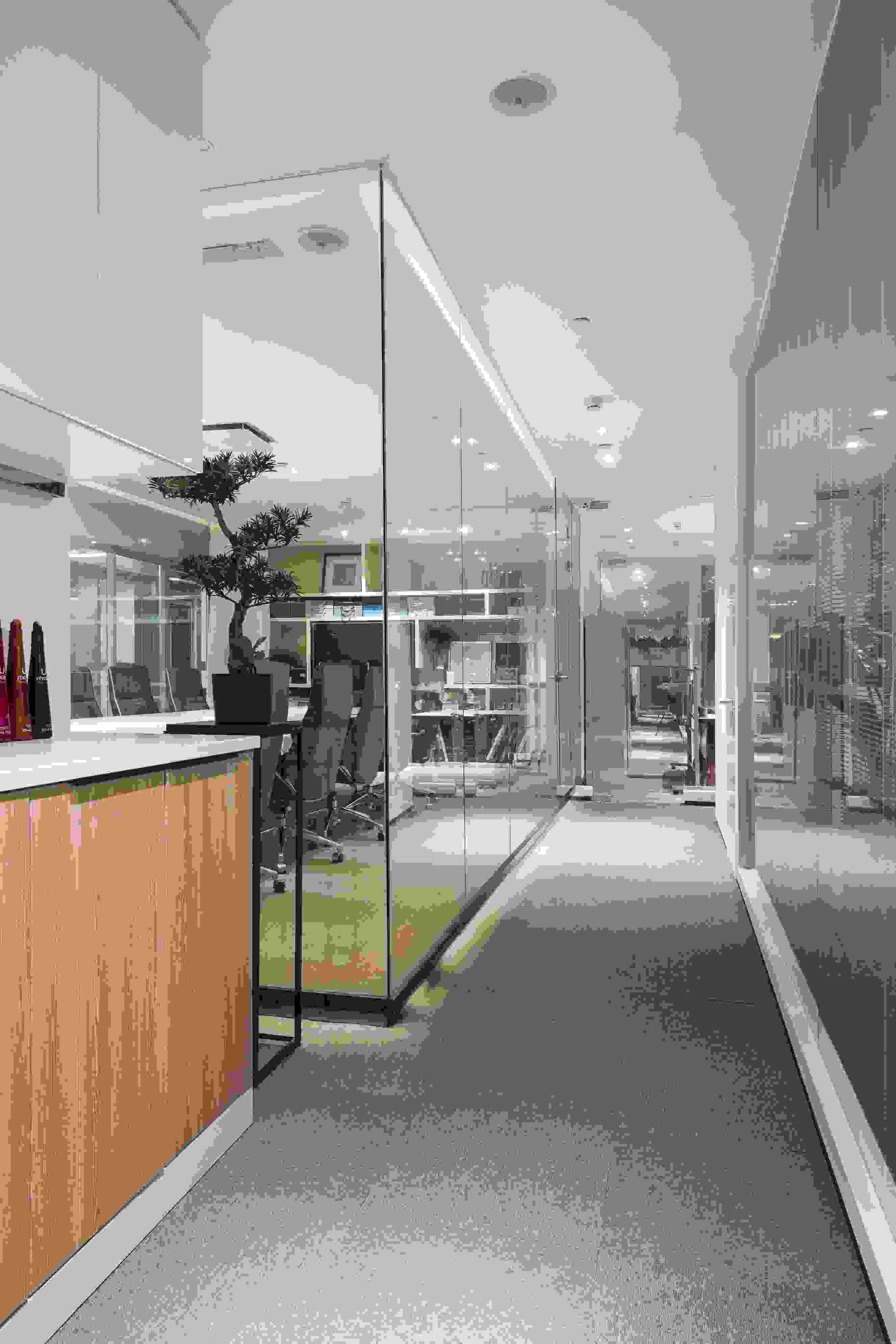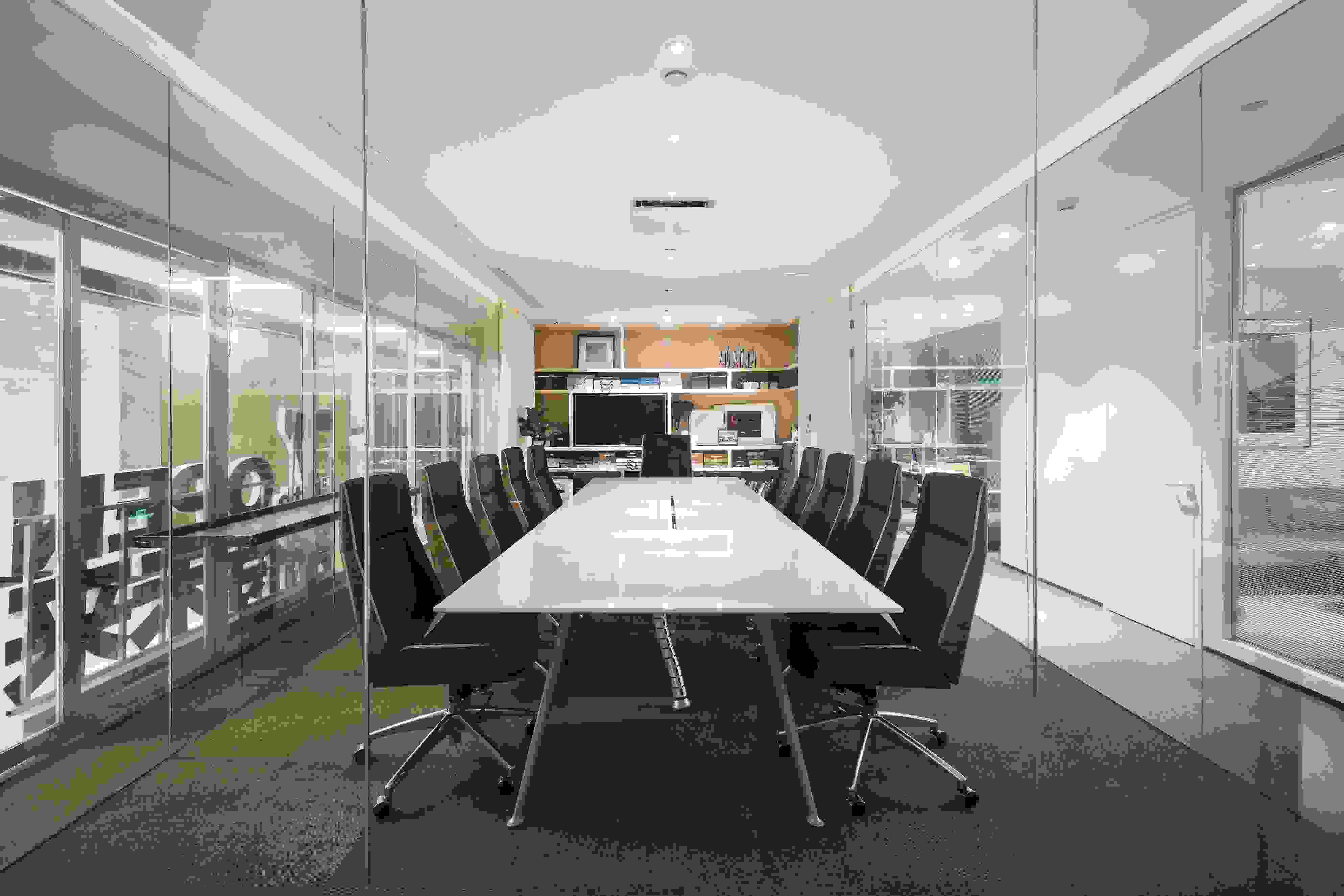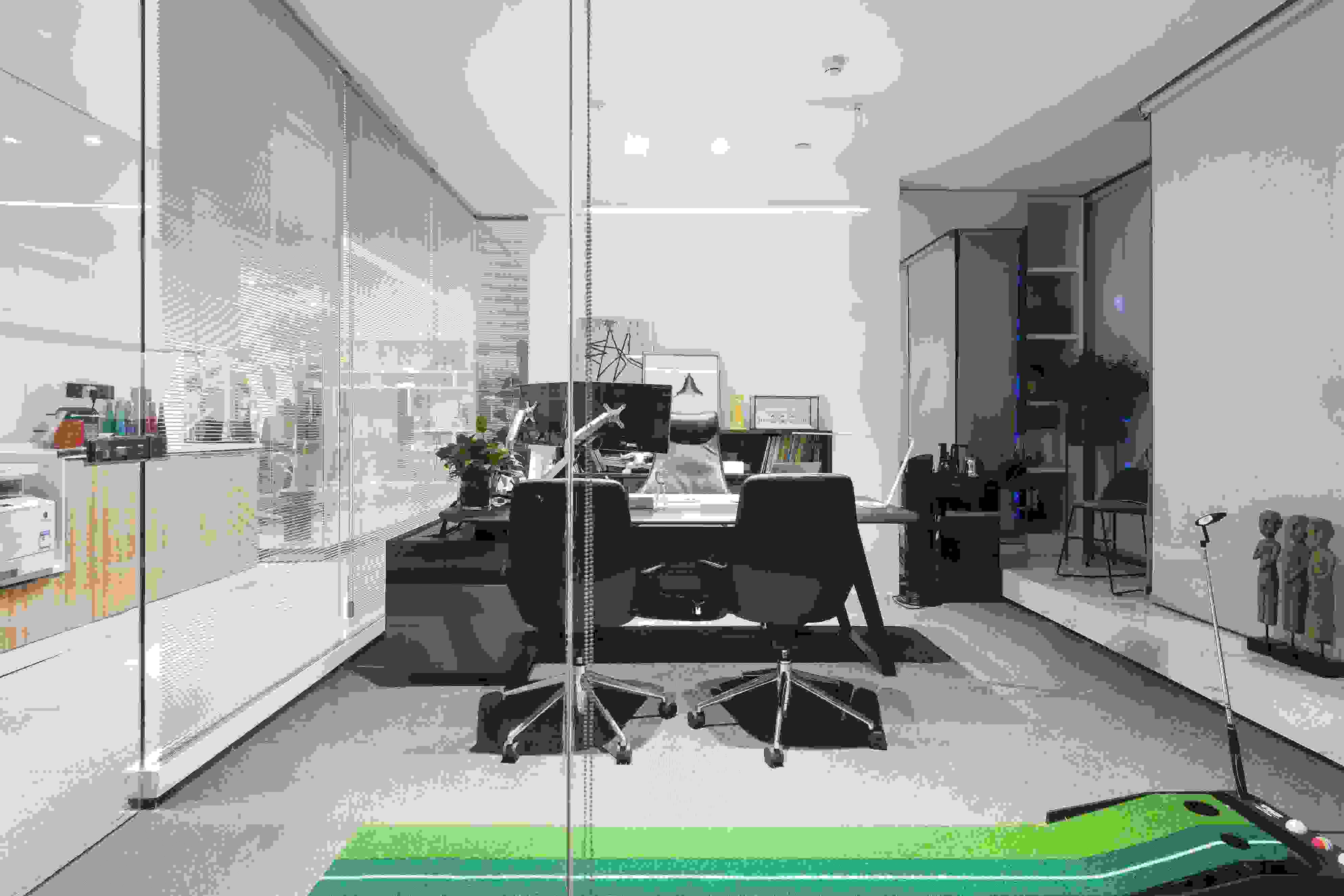 會議室以玻璃盒子為設(shè)計想法,運用二次空間的形式,清楚地展示了空間里人與人之間的互動。