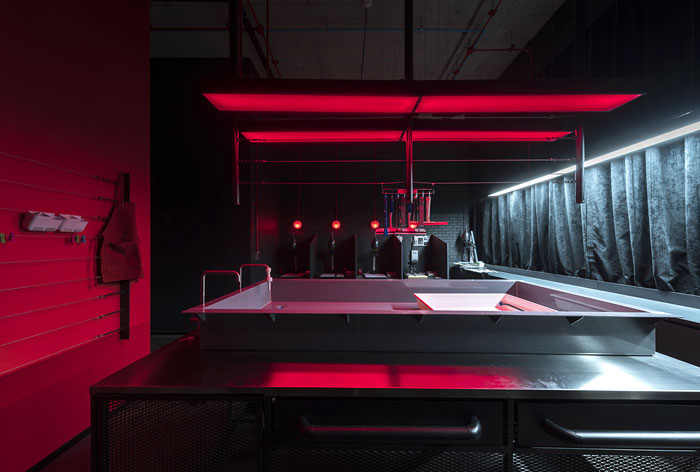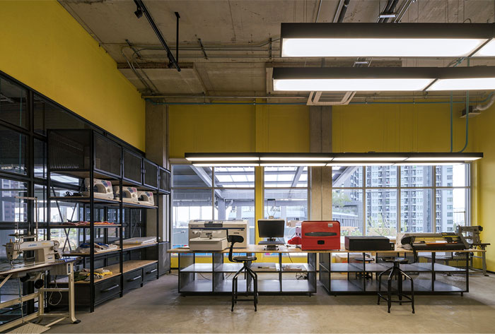 整個(gè) Co-Working Space 面積寬敞,以工業(yè)廠房的形式接待著來訪的客人,稍經(jīng)修飾的地面與裸露的混凝土立柱,帶來*為原始、粗獷的空間魅力,一層為咖啡廳,從售賣各種食品的吧臺(tái)到充滿工業(yè)感的桌椅,很難將它與工作空間聯(lián)想到一塊。