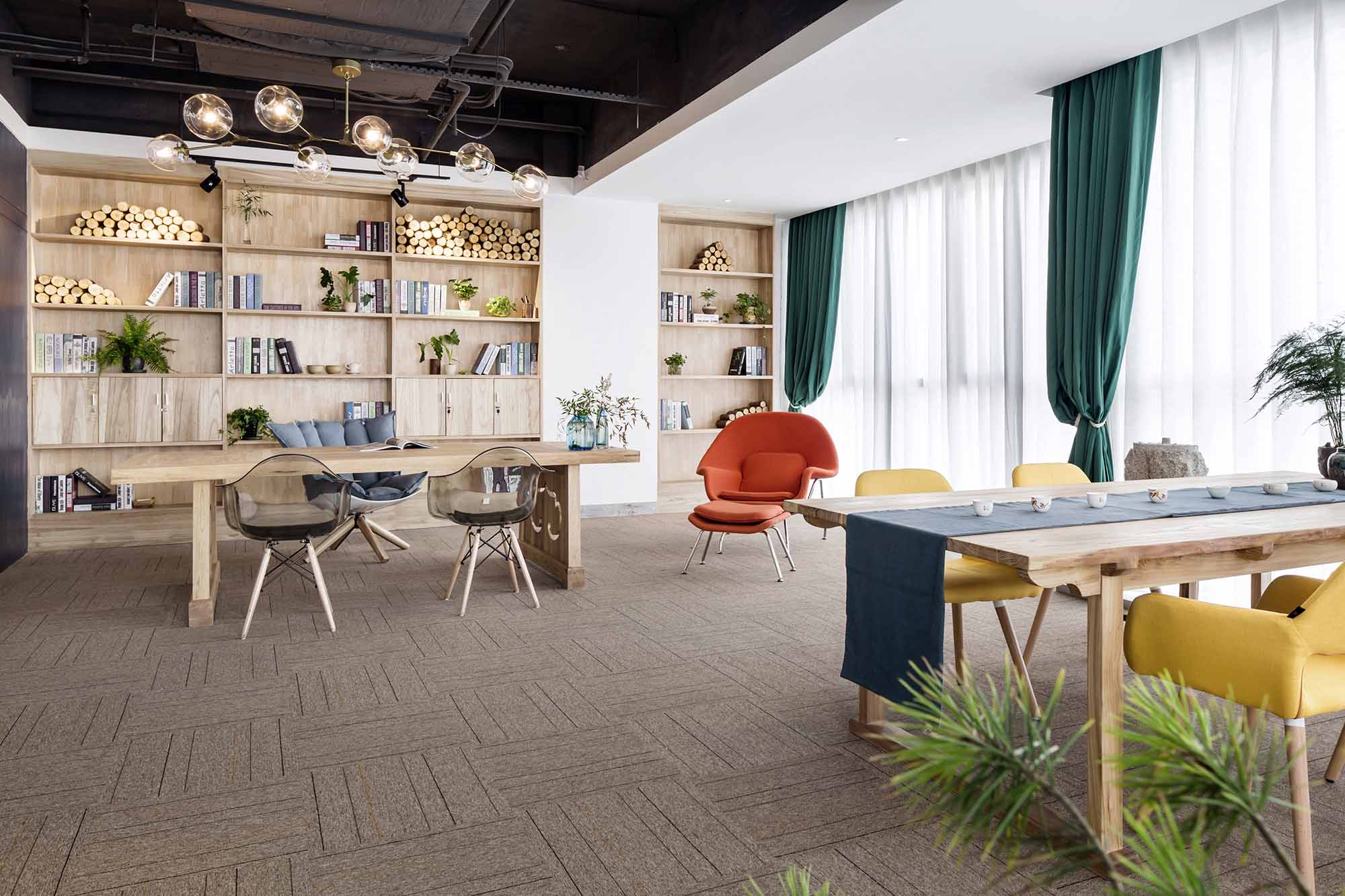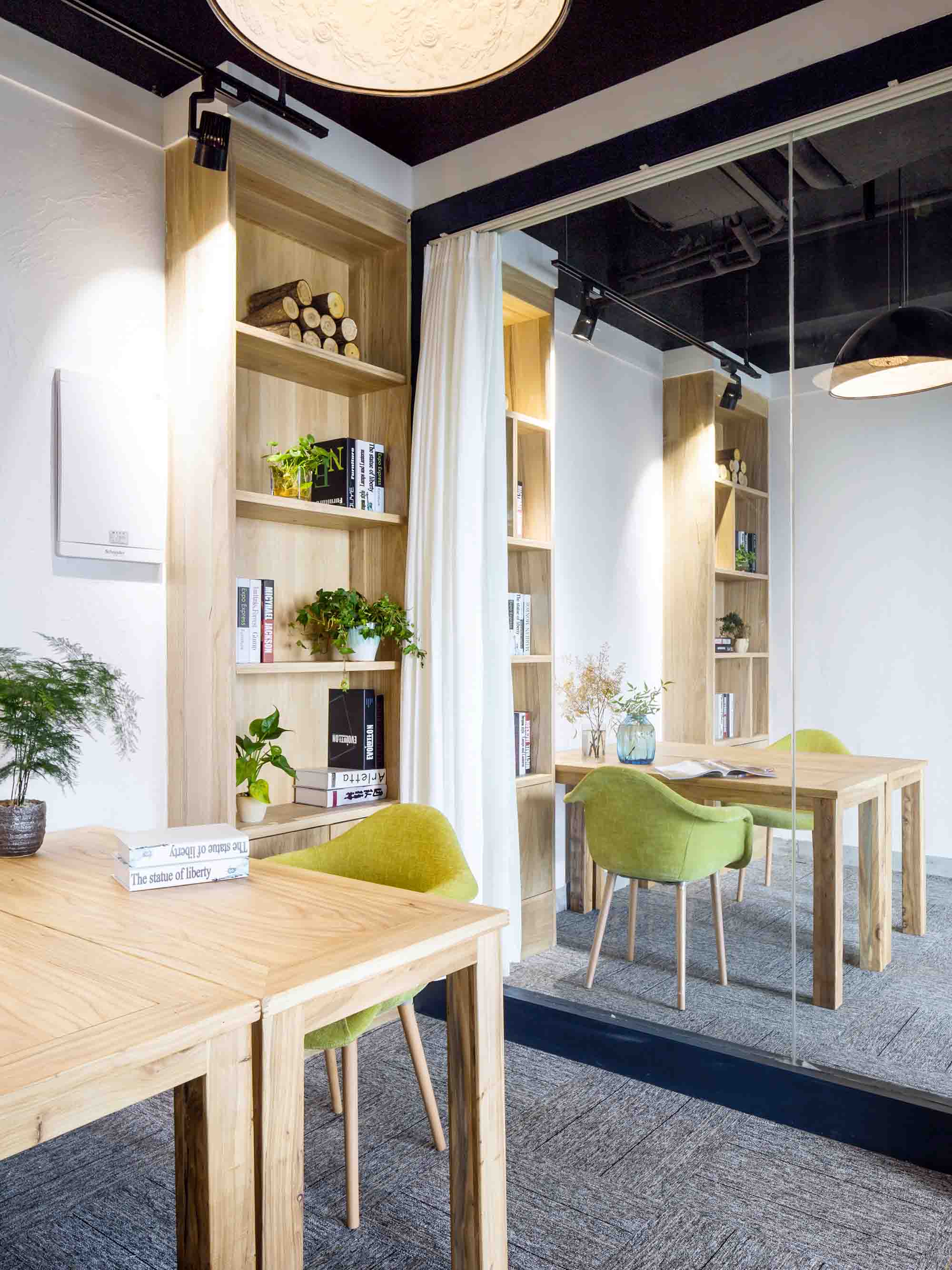 在功能分區上,設計師將整個空間分成了三份。獨立的總經理辦公室,連通著的工作區與會議區,開放式的辦公空間可以**限度的利用自然光線,與外界環境形成流暢的互動和交流,*終達成空間整體的默契和統一。整個空間一改辦公室嚴肅,乏味的形象,做成了一個自然流露,**人文氣息的辦公空間。