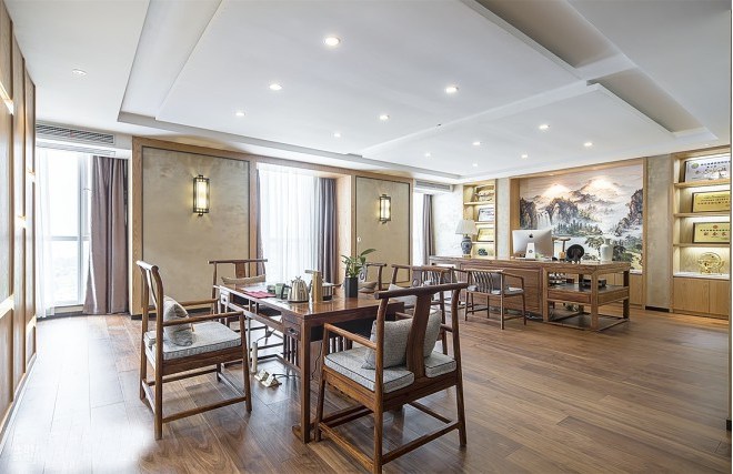 總經(jīng)理的辦公室裝飾也要與辦公室的整體裝修風(fēng)格相一致,不應(yīng)該有風(fēng)格的多樣性,這只會(huì)給人一種無序的建筑感覺,影響整個(gè)辦公室的美感。簡單的中式設(shè)計(jì)或現(xiàn)代風(fēng)格的穩(wěn)健設(shè)計(jì),摒棄了對(duì)風(fēng)格外觀的追求,簡化了其復(fù)雜性,并將其作為設(shè)計(jì)的核心來表達(dá)和接受。設(shè)計(jì)師在情感、文化、氣質(zhì)、身份層面上尋找一種接觸、溝通、協(xié)調(diào)的方式,以表達(dá)人們對(duì)新辦公室的精神渴望。