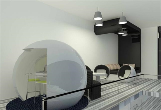 時尚雜志社創意風格辦公室裝潢設計:集結八家文創公司的辦公空間,猶如來自四方的八個家族所組成的聚落,似有機體般自然的形成。有大有小,忽密忽疏的八個方塊體,懸吊在入口柜臺的上方,紅橘色系的大廳意象,開啟了如樂園般的工作氛圍,**了人們進入聚落的中心,那是一個以植生柱為焦點的活動空間,如同老聚落里的大樹廣場,是三五好友納涼談天,或村民大集會的場所,其內沒有任何固著物,有的是可隨意移動的椅凳,成為辦公室內較隨性也較彈性的使用空間。